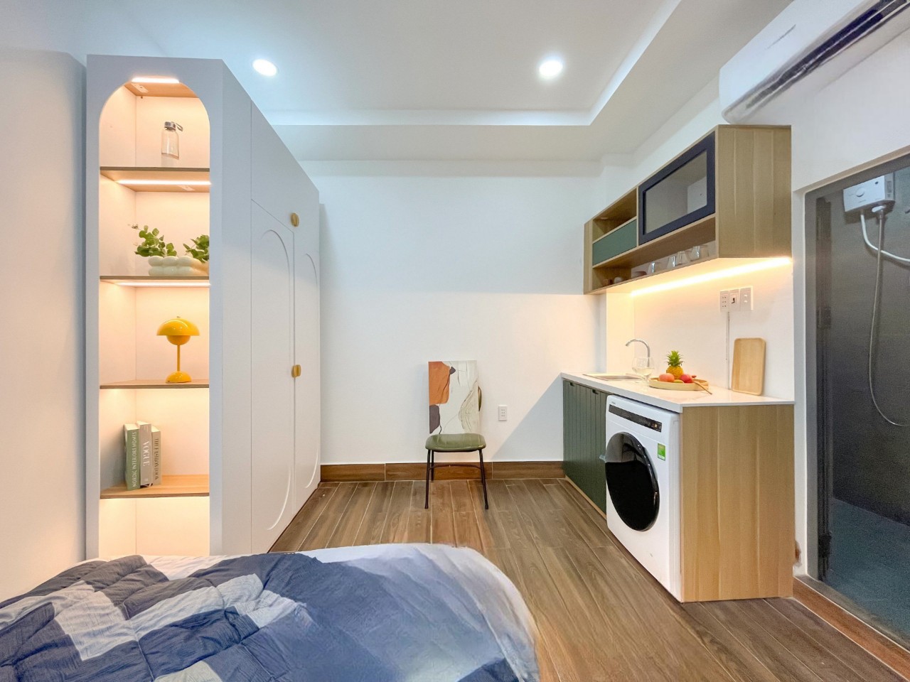 Các căn hộ tại đây có diện tích 35m2, được trang bị đầy đủ nội thất hiện đại như giường, tủ, bàn ghế, bếp, máy giặt,... Các phòng đều có cửa sổ thoáng mát, đón ánh sáng tự nhiên.